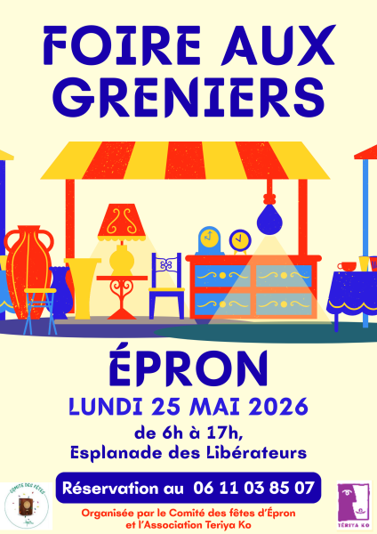 La traditionnelle « Foire aux greniers » organisée par le Comité des fêtes et Tériya Ko aura lieu le lundi de Pentecôte , 25 mai 2026 Lieu : Esplanade des Libérateurs et rues adjacentes (parking du gymnase, rues du Chemin de Fer, des Mésanges, des Champs…)